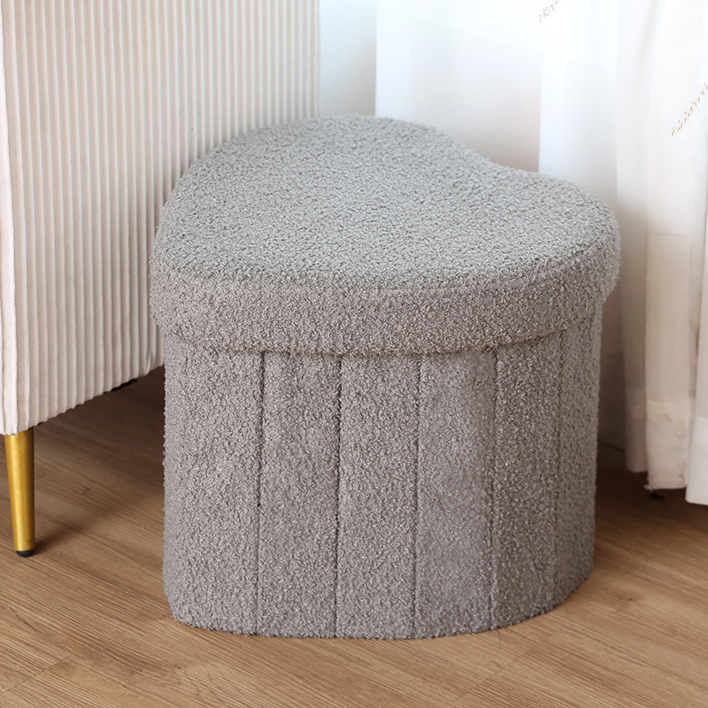 Multifunktionaler herzförmiger Aufbewahrungshocker. Teddy-Samt-Aufbewahrungshocker kann auf dem Sofa